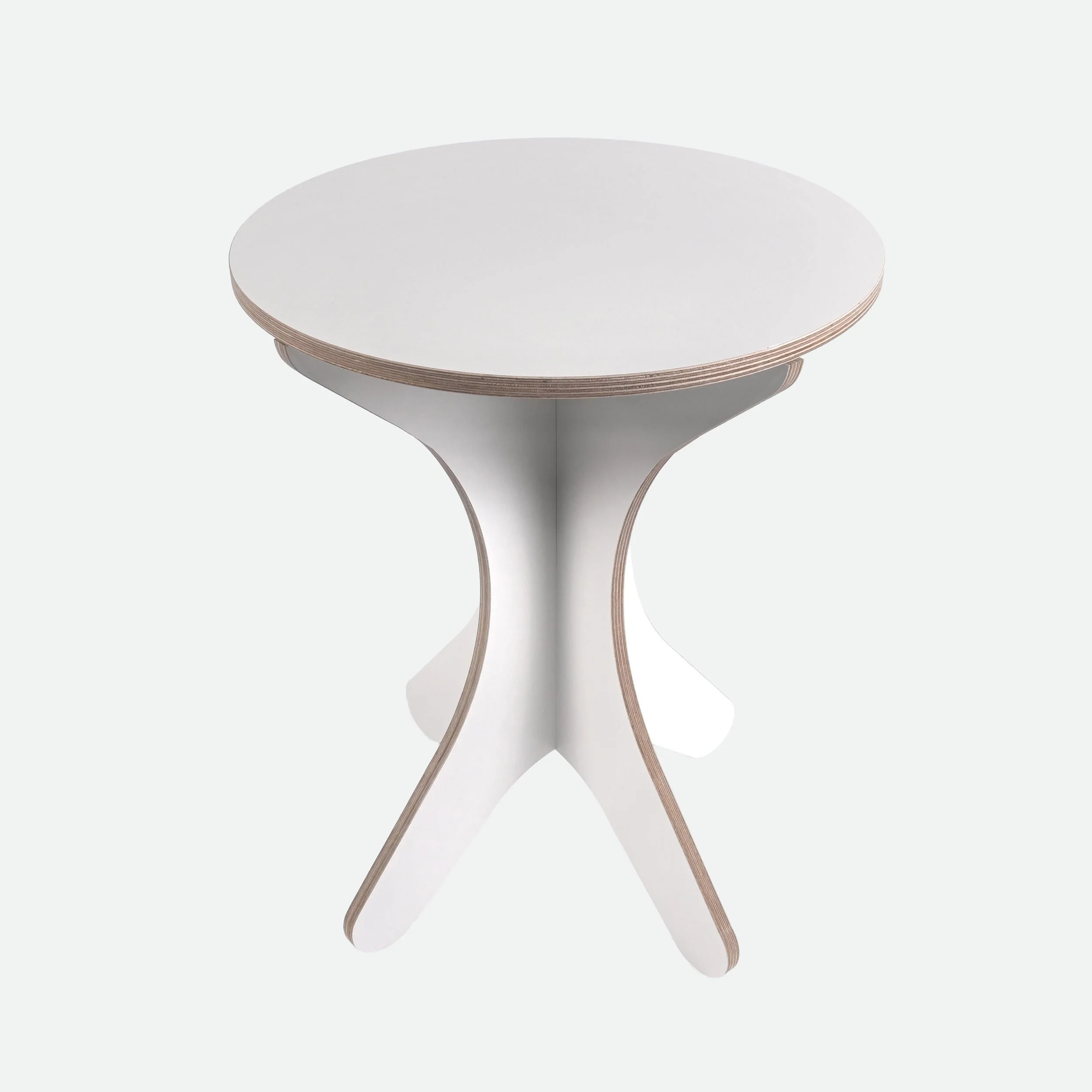 Birch ply stool/side table, born from the idea of minimal essential components and no fixings. It comprises only three parts with two joints. Its simplicity creates a seamless design, combining elegance and durability. Made to order with limited stock availability.