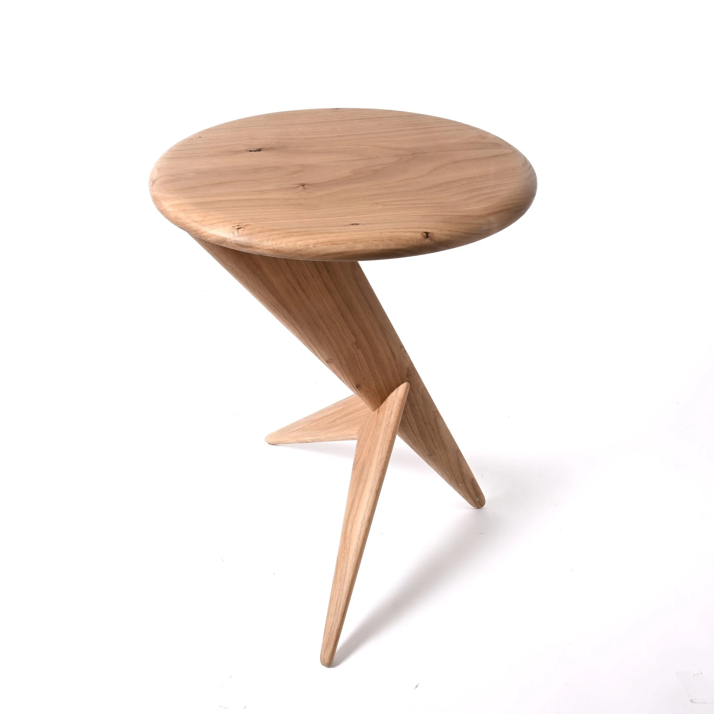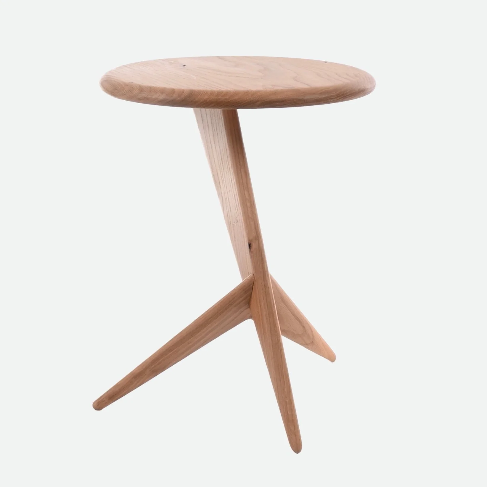 This solid Oak stylish Fin side table, born from the idea of minimal essential components and no fixings. There are only three parts to this table with two joints. The counterlever-balanced top appears to defy gravity. Its simplicity delivers a seamless design, combining elegance with durability. This product has limited stock availability and is made to order.